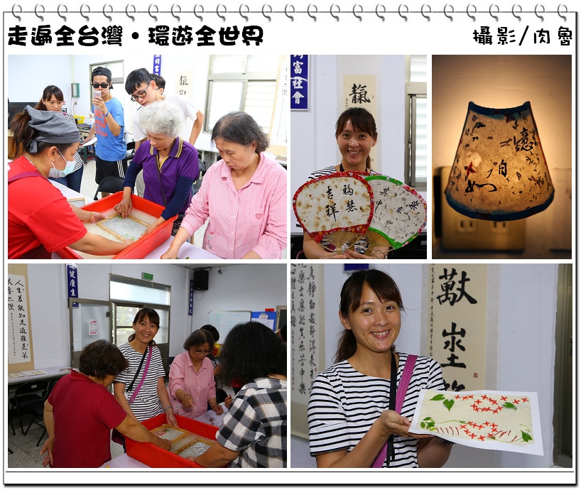 ▲當地的社區媽媽示範如何手作紙,當手作紙器具下去撈紙時可是要維持平衡唷,否則撈出來的紙漿就會不均勻,到時製作起來的紙就會有厚有博,當撈起紙漿後還要加入當天現採的花草,讓你天馬行空的發揮創意作畫哩,這個花草創意真的會讓簡單只是做一張紙變的很洋溢藝術氣息哩。