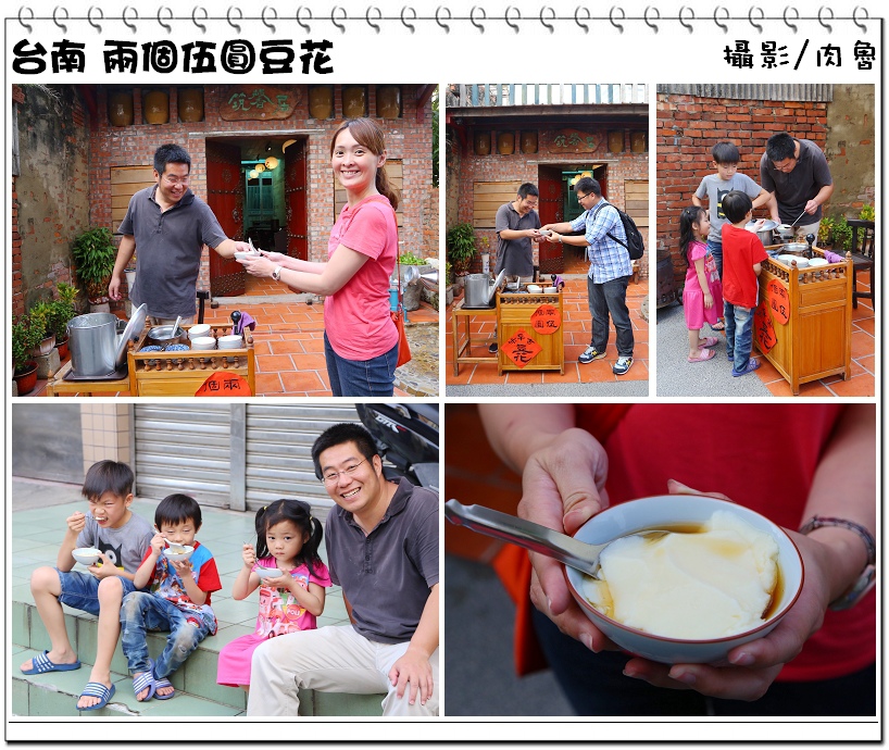 ▲台南兩個伍圓古早味豆花,勇伯遵循傳統古法製作,辛苦反覆手揉磨製黃豆,飄著天然豆香的好吃豆花,假日下午四點信義街開賣豆花,1碗10元限量60碗的傳統美味,喜愛收藏老物的勇伯,有著一顆純真的心,因緣際會看到古早味豆花的傳統作法,那彷彿穿越時光的懷念味道令人難忘,於是勇伯利用經營民宿及筑馨居餐廳的空檔,一步一步努力學習著製作豆花,從半年前就聽到勇伯開心說道:『有機會他一定要推著豆花攤車,在咾咕石街賣著一碗10元的豆花,用銅板就能嚐到傳統美味...』,想不到這小小夢想,竟然真正實現了,只要是在假日或國定假日,勇伯都會在信義街上,賣著一碗兩個伍圓的豆花,伍圓伍圓就是結緣意思,假日,就來府城信義街,找勇伯吃豆花吧。