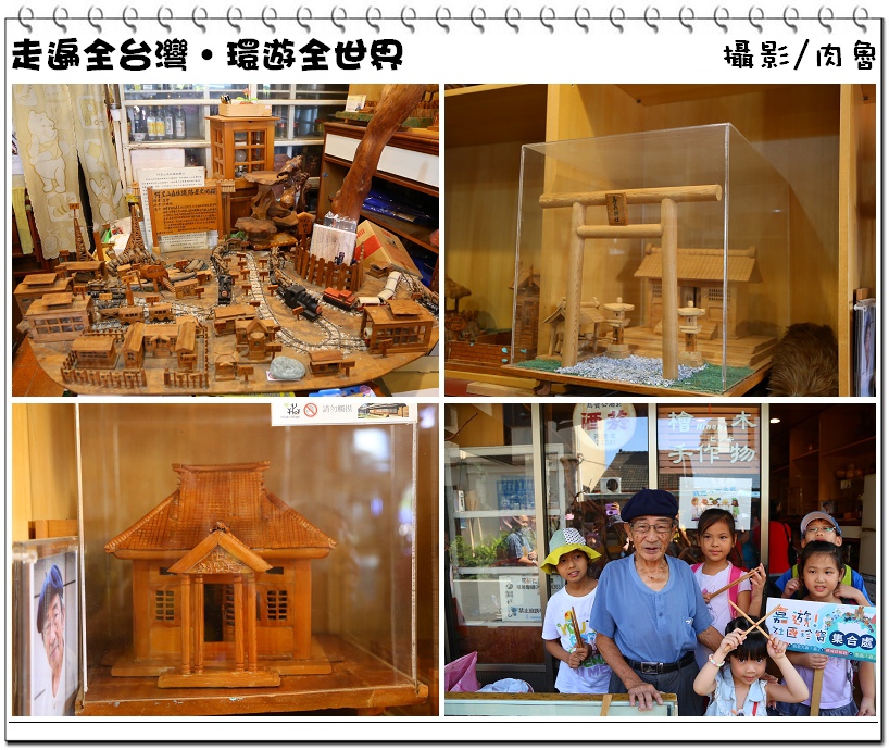 ▲檜意森活村的周圍也隱藏了五間嘉義故事屋,分別為新高販仔間、江振裕檜木手作屋、勝安堂百草舖、天理教東門教會及雲霄古道王廣禮里長辦公處,很推薦可以走訪江振裕檜木手作屋,現年80幾歲的江振裕是林務局退休員工,為了重現腦海裡的嘉義地景,像是嘉義神社、古城門等,於是將曾為柑仔店的門面整修成檜木手作屋,一進到裡面可見到用紅檜雕刻而成的嘉義一景一物,儼然就像是被小叮噹縮小的世界一樣神奇。